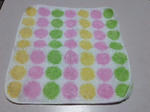 緑、ピンク、黄色の周りを紫がやさしく包んでくれます。