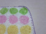なのでほつれ止めも兼ねて紫の糸で周りをぐるっと縁どることにしました。