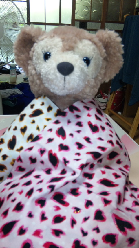去年の花火大会で見た浴衣が可愛くて同じものをくまさんサイズで作りたくて似ている生地を探したんです。