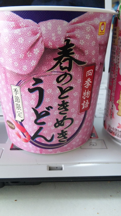 しかたなくカップ麺にしましたが、選んだのはさくら模様のうどん。